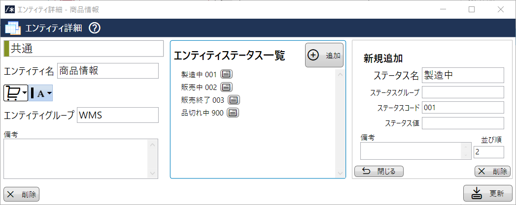 エンティティとステータス遷移定義 準備中