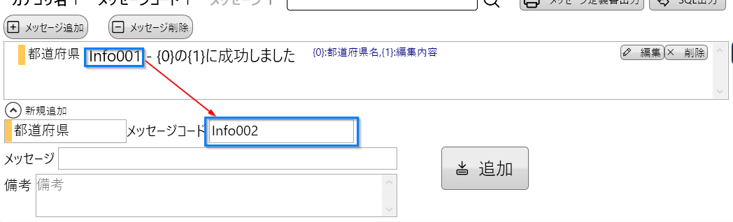 最後に使用したカテゴリのメッセージコードから次の番号を自動で表示してくれので