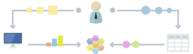 Develosが用意したわかりやすい図形のみを利用して画面遷移やフローを表現します。 システムに慣れ親しまないユーザでもわかりやすいユースケースがあれば、 コミュニケーション効率が向上します。