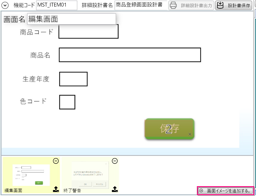 Develosは画面UIの作成は既存のツールに任せて最終的な画面UIに設計情報を記述する方法で画面設計情報を管理します。